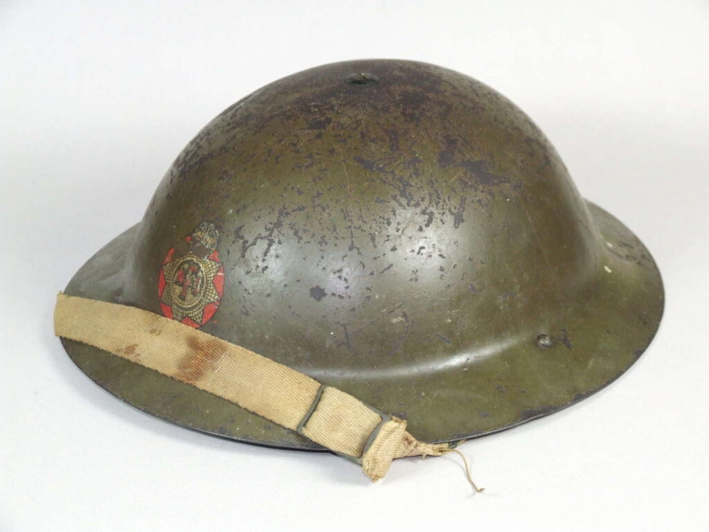 Although research suggests that BMB produced some rimless helmets for use by the home front during WW11, Mk1 Brodies were also refurbished and upgraded during the early part of the war. These helmets were officially designated as the MK1*. I have little doubt that this National Fire Service Helmet is one of these early Brodie conversions and as such rather a scarce piece, close inspection also suggesting the remains of the WW1 grit finish under the olive green NFS paint.